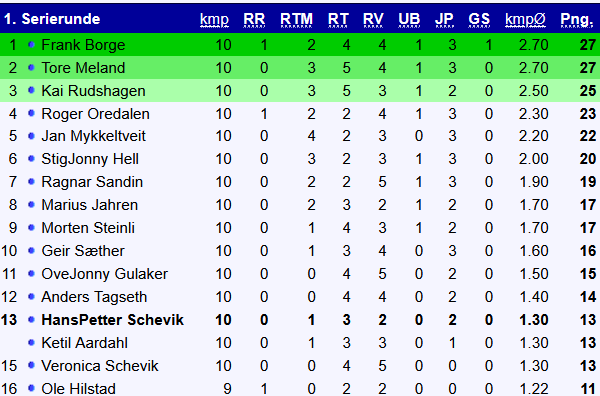 Kai Rudshagen ligger på tredjeplass med 25 poeng, tett fulgt av Roger Oredalen med 23 poeng. Resten av feltet er også tett samlet, noe som lover godt for en spennende sesong.