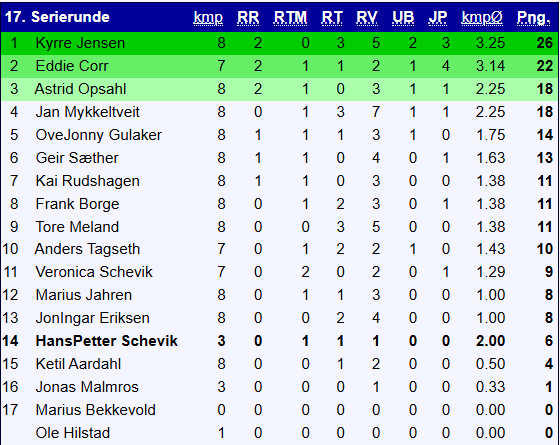 I den 17. runden av tippekonkurransen for Eliteserien var Kyrre Jensen i en klasse for seg. Med en imponerende poengsum på 26 poeng, vant han runden overlegent og sikret seg et poengsnitt på hele 3.25.