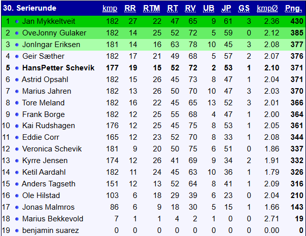 5. HansPetter Schevik – 371 poeng