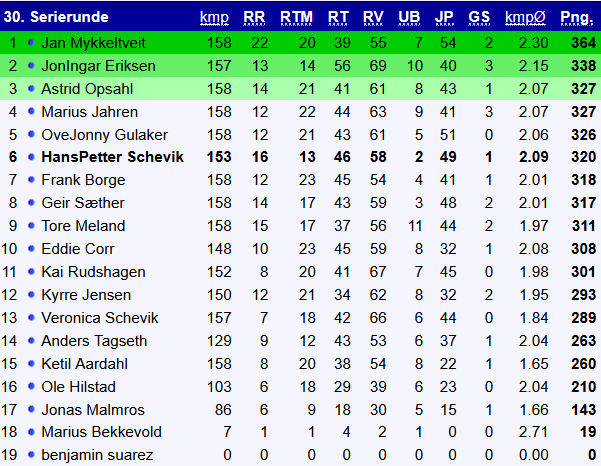 Geir Sæther bygde sin seier på en solid blanding av presisjon og lykke. Han tippet hele to kamper med helt riktig resultat, i tillegg til en riktig vinner med korrekt målforskjell. Med en joker som ga ekstra bonuspoeng, var seieren velfortjent. Jan Mykkeltveit leverte også en sterk runde med 18 poeng, og sikret seg en viktig andreplass. Kyrre Jensen endte på en solid tredjeplass med 17 poeng.